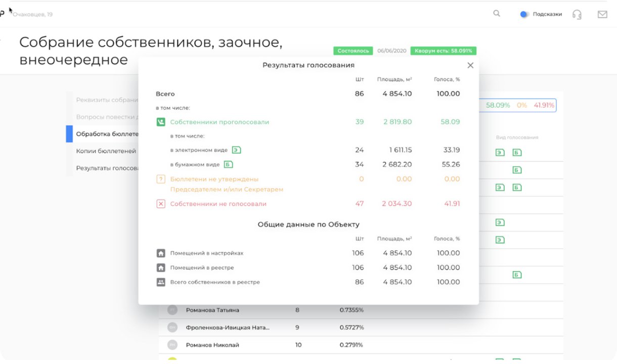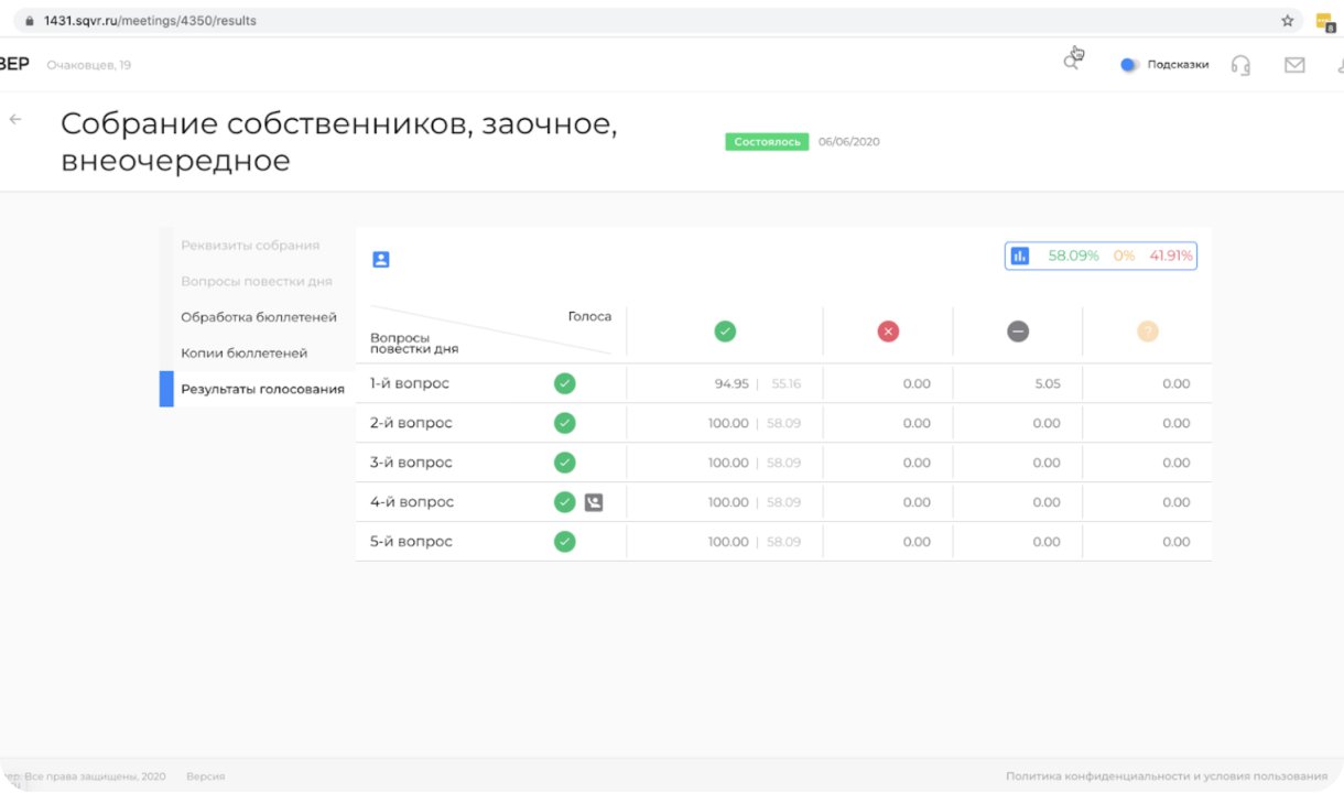 Юристы ТСН писали жалобы в Сквер и в Роскомнадзор, уговаривали нас прекратить собрание, грозили продолжением тяжб. Но на собрание проголосовали почти 60% собственников и единогласно высказались по всем ключевым вопросам.